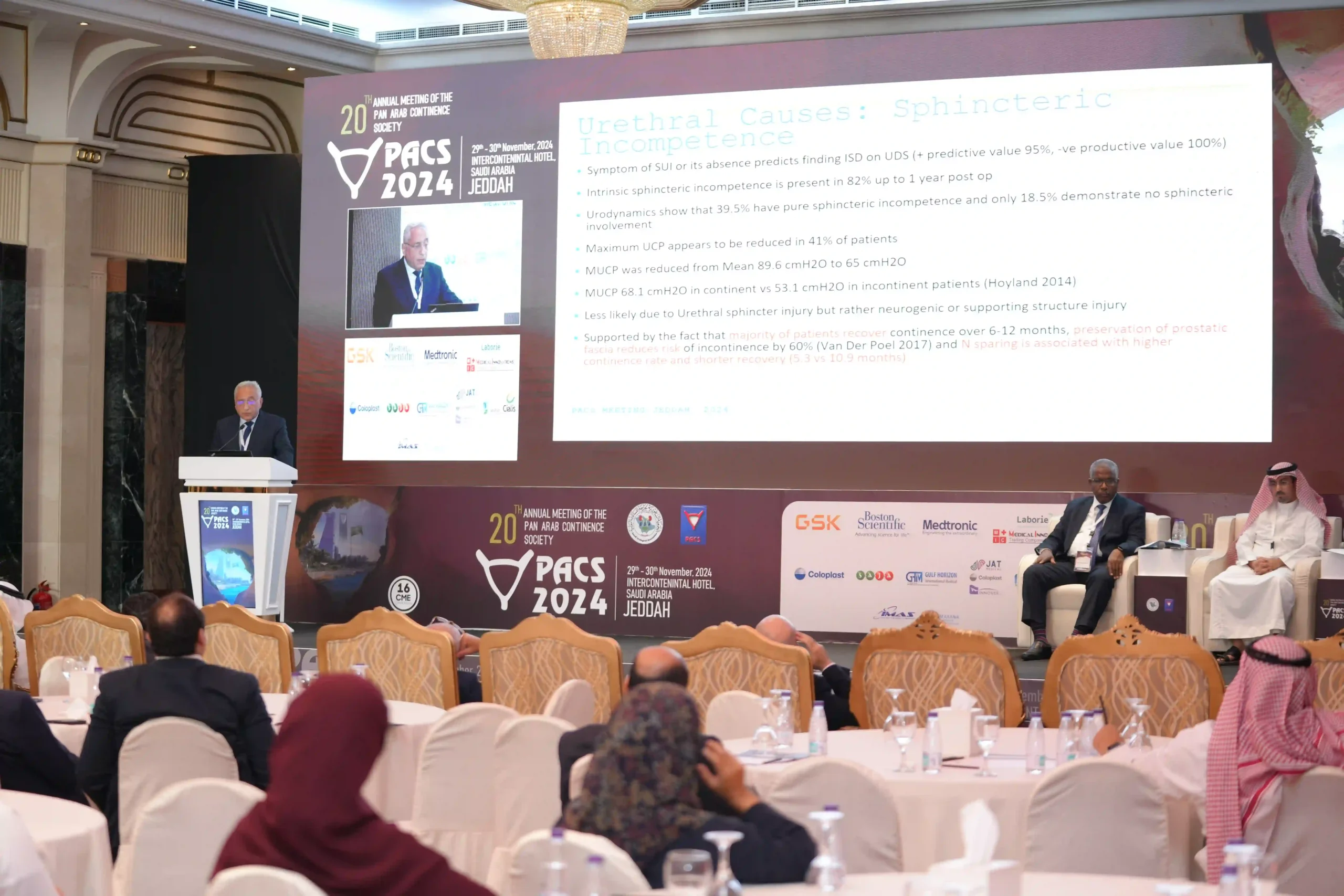 المؤتمر العشرين للجمعية العربية لسلس البول (PACS) لعام 2024، والذي انعقد لأول مرة في مدينة جدة النابضة بالحياة يومي 29 و30 نوفمبر 2024. نُظم هذا الحدث المرموق برعاية الجمعية السعودية لجراحة المسالك البولية بالتعاون مع الجمعية العربية لسلس البول، ويمثل إنجازًا هامًا في الالتزام بتطوير مجال جراحة المسالك البولية وسلس البول.